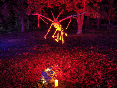 Cobbled together from abandoned bones and ruined skeletons using steel and arcane techniques he hovers menacingly. His wingspan is 7 feet.